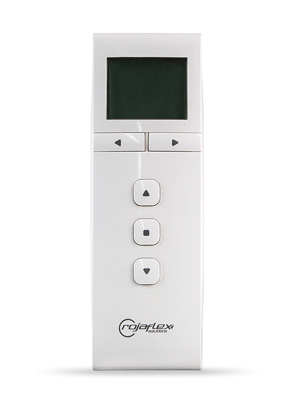 Handsender für den Betrieb von Rojaflex-Antrieben. Die Fernbedienung verfügt über fünfzehn Kanäle. Es ist auch mit einem energiesparenden LCD-Display ausgestattet.