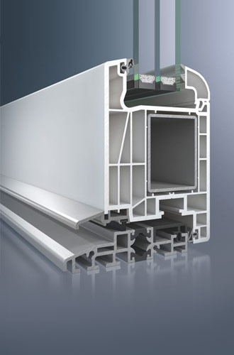 Kunststoff-Außentüreniese Türen werden aus dem hochschlagfesten Polyvinylchlorid mit hoher Formbeständigkeit und Biegefestigkeit (Firma Schüco) hergestellt. Mehrzellige Profile garantieren eine sehr gute Thermoisolierung. Die Stahlverstärkungen tragen zur Stabilität und Festigkeit der hergestellten Türen bei.