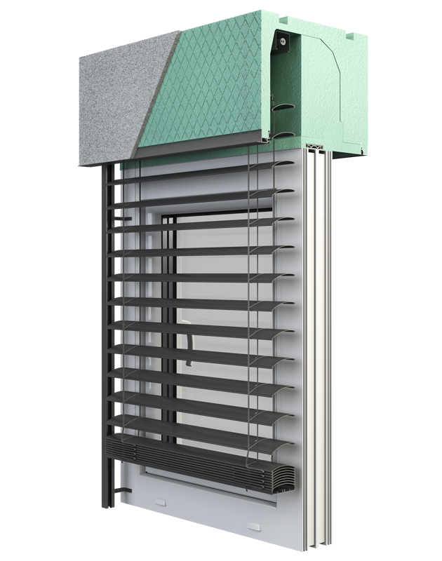 Die Kombination von Neopor Styropor mit einer dichten Konstruktion ergibt einen hervorragenden Schutz vor Sonne, Wind und Feuchtigkeit. Durch zusätzliche Verstärkungen, wie im Schaum eingebettete Stabilisierungskonsolen, Fensteraussteifungen und innovative Befestigungen, wird eine mit Fenster und Wand dauerhaft verbundene Konstruktion geschaffen. Sie kann perfekt mit jeder Art von Oberflächenbehandlung (Putz, WDVS, Klinker) kombiniert werden und schafft so mit der Wand ein integrales Ganzes.